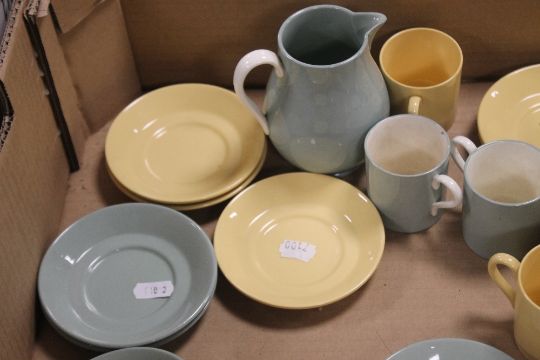 A TRAY OF WEDGWOOD 'ETRURIA' YELLOW AND GREEN (tray not included)