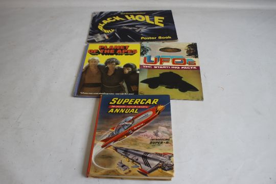 WALT DISNEY PRODUCTIONS' BLACK HOLE POSTER BOOK 1979 together with 'UFOs The Startling Facts' and 'Supercar Annual' 1962 and 'Planet of The Apes Annual' (4)