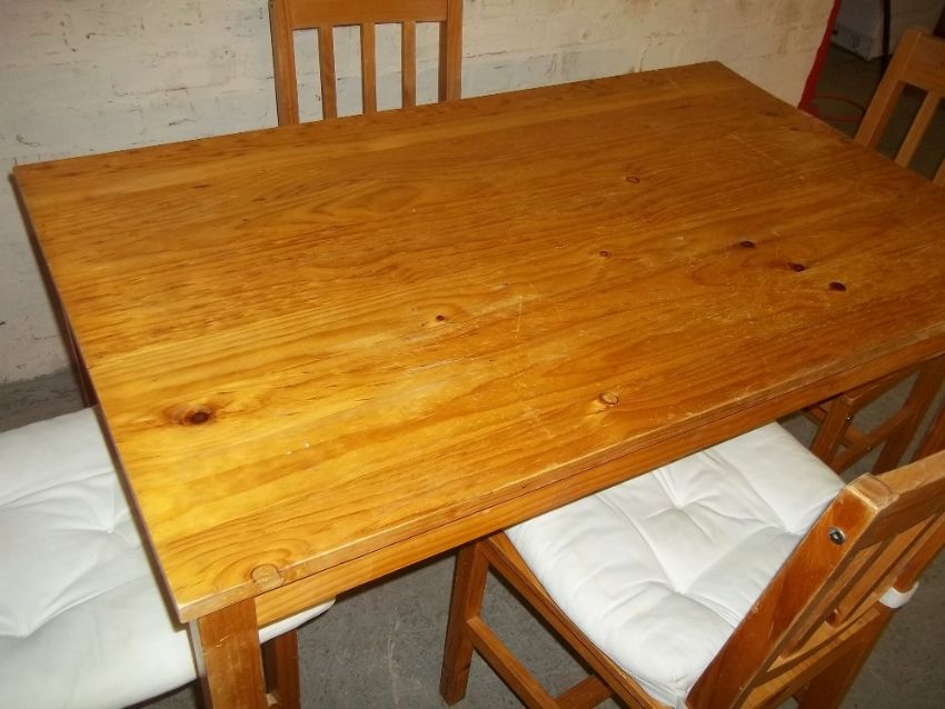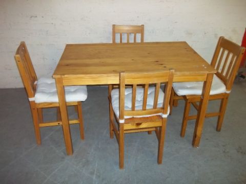 A PINE DINING SET WITH FOUR CHAIRS
