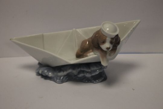 A LLADRO DOG IN A BOAT