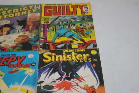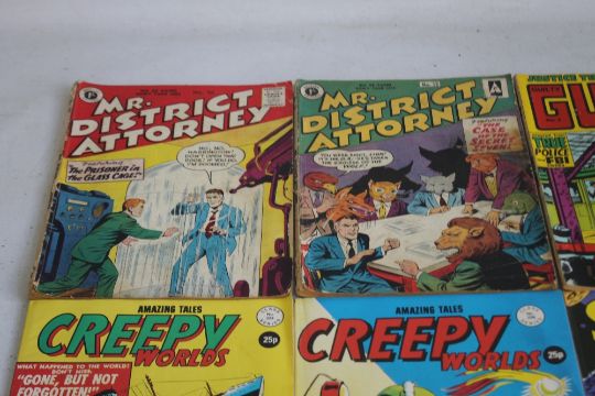 MR DISTRICT ATTORNEY' COMIC BOOK, #10 and #12 British Edition together with 'Justice Traps The Guilty' #8, 'Uncanny Tales' #153, 'Amazing Tales Creepy Worlds' #223 and #226, 'Amazing Stories Sinister Tales' #207 and 'Astonishing Tales Amazing Stories of Suspense #221 and #222 (9)