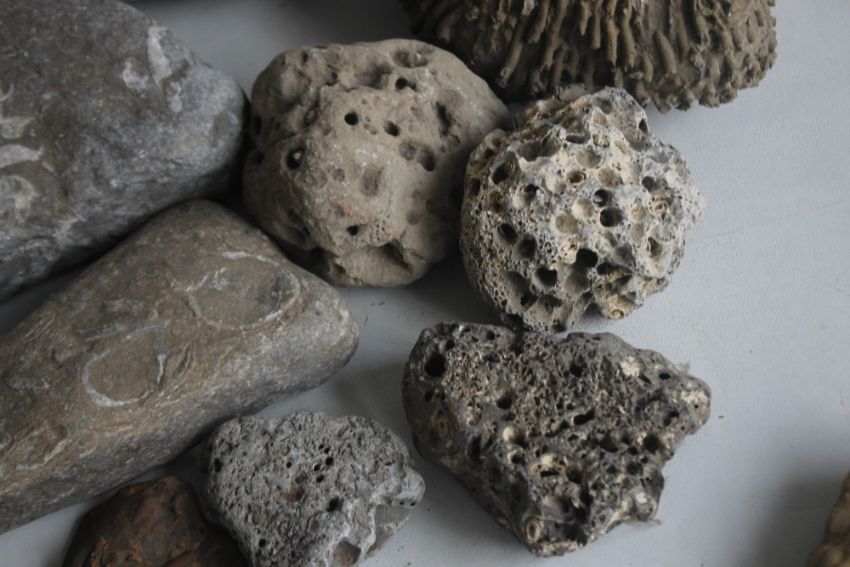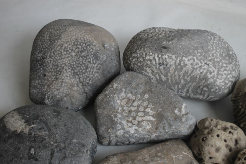 A COLLECTION OF FOSSILS MAINLY IN LARGE BOLDER FORM, to include a coprolite (fossilized poo)