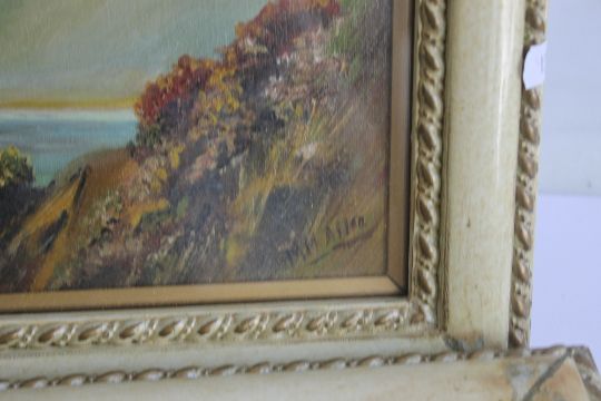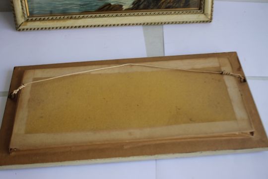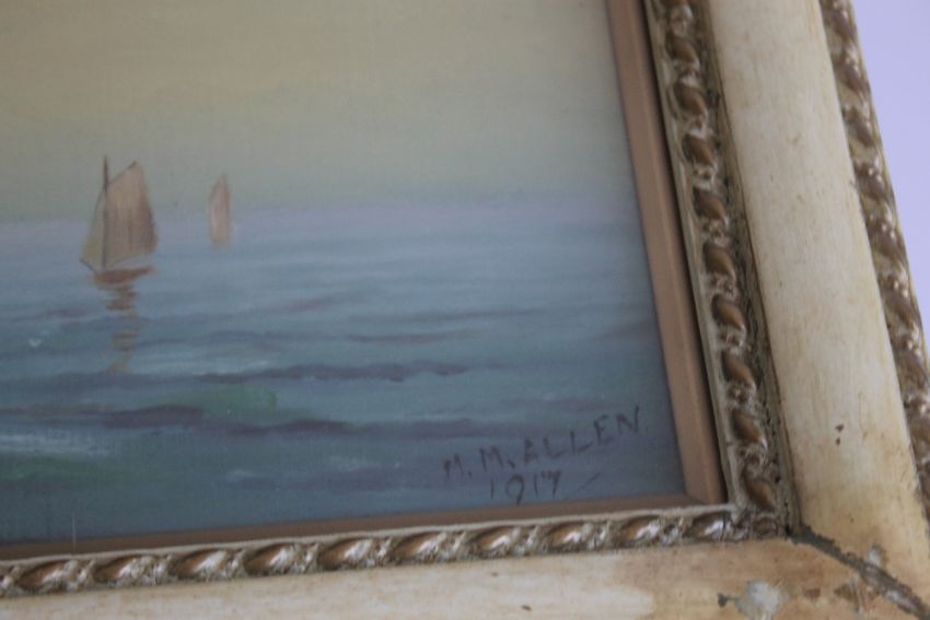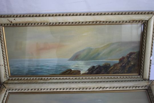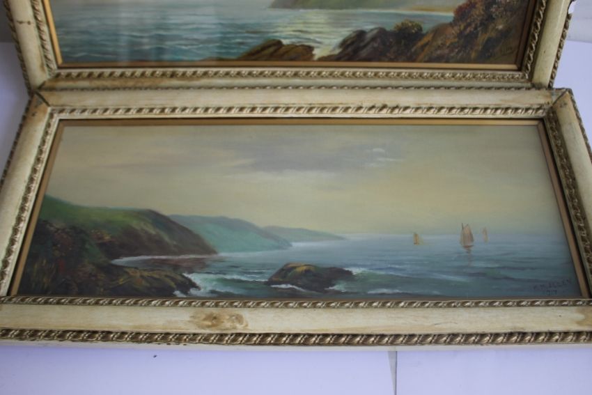 TWO FRAMED AND GLAZED WATERCOLOURS DEPICTING SEASCAPES SIGNED "M ALLEN", 58 x 28cm, together with two framed and glazed watercolours depicting farm yard scenes also signed "M Allen" 53 x 37 cm