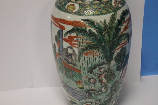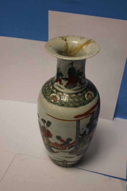 AN ORIENTAL STYLE VASE, NO MARKS, H 45.5 CM¦Condition Report:Various repairs to the rim¦