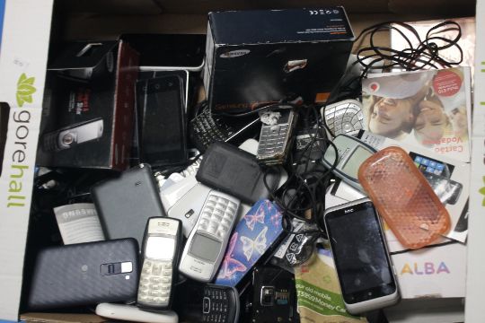 A QUANTITY OF MOBILE PHONES, chargers etc. to include a Nokia 3330 A/F