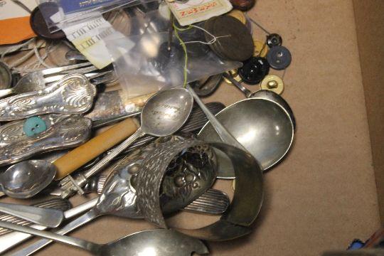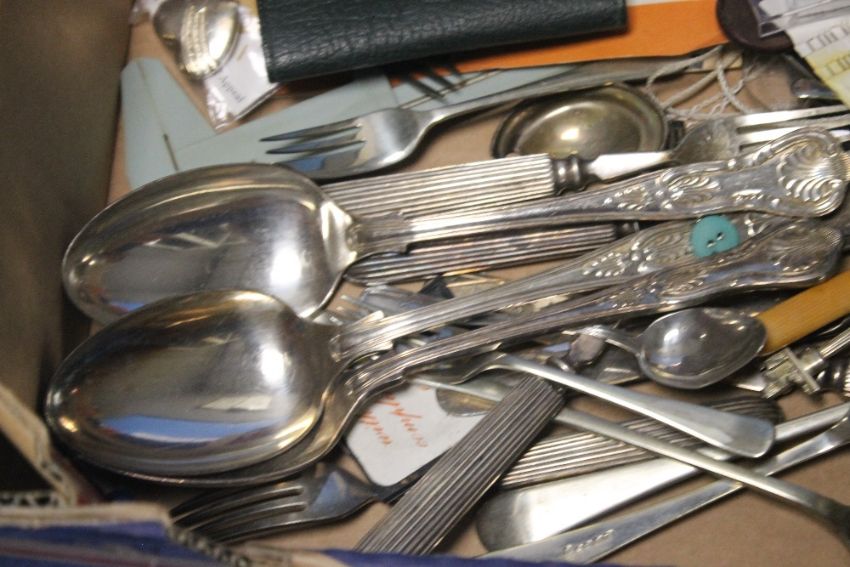 A QUANTITY OF WHITE METAL FLATWARE ETC