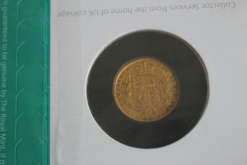 A VICTORIAN 1854 SHIELD BACK SOVEREIGN IN ROYAL MINT COLLECTORS SERVICES PACKET