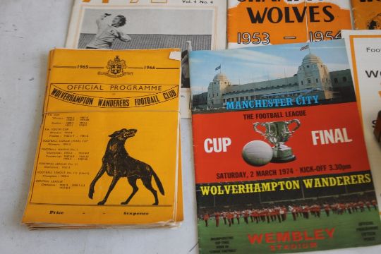 A COLLECTION OF MAINLY WOLVERHAMPTON WANDERERS INTEREST FOOTBALL PROGRAMMES, mostly 1950s/1960s with some later examples, and fixtures cards, scarves, football rattle etc. together with other football related ephemera