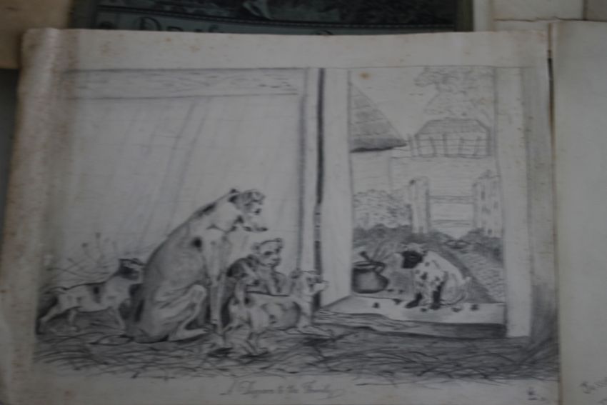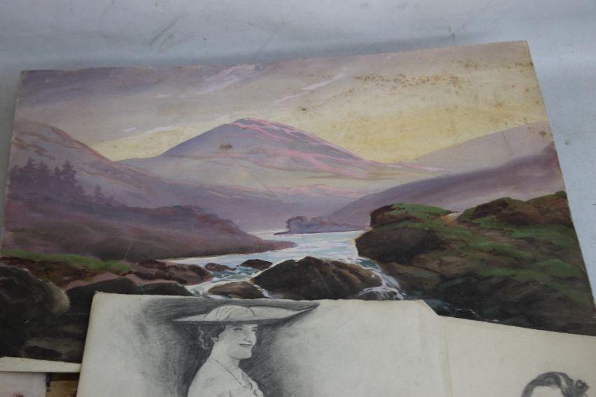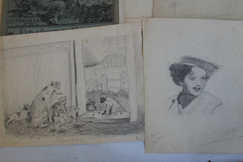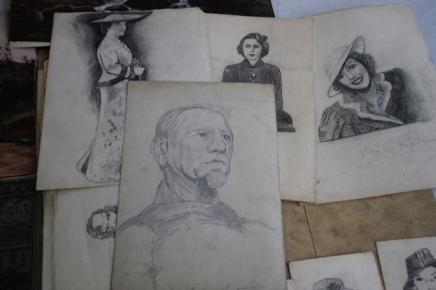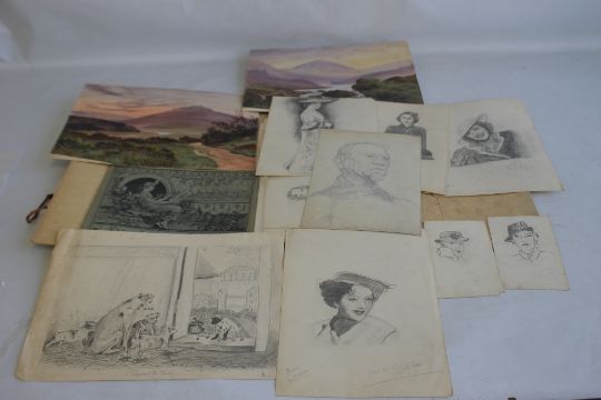 A FOLDER OF PENCIL DRAWINGS AND PAINTINGS
