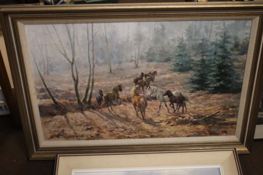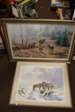TWO FRAMED OILS DEPICTING HORSES, both signed "R.S.Welch