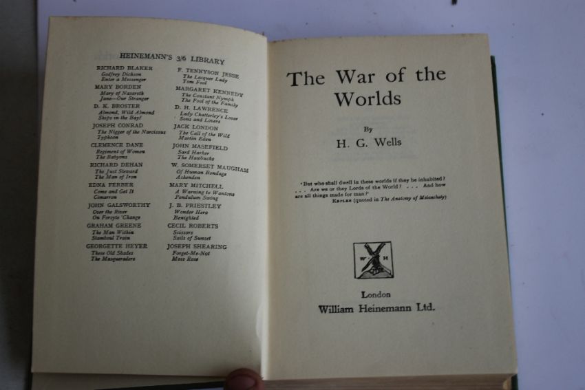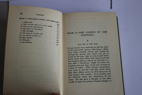 H. G. WELLS AND OTHER SCIENCE FICTION BOOKS to include 'The War of the Worlds' William Heinemann Ltd. 1938 reprint, Martin Greenberg - 'Men Against The Stars' published by Grayson & Grayson Ltd. 1951, A. E. van Vogt - 'The Voyage of the Space Beagle', Grayson & Grayson 1951, Everett F. Bleiler & T. E. Dikty (Ed.) - 'The Best Science Fiction Stories' Grayson & Grayson 1951 and Ray Bradbury - 'The Illustrated Man', Rupert Hart-Davis, 2nd imp. 1954 (12)¦Condition Report:No dustjackets¦
