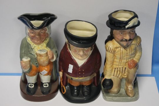 THREE ROYAL DOULTON TOBY JUGS to include Happy John, The Huntsman and Sir Francis Drake (3)