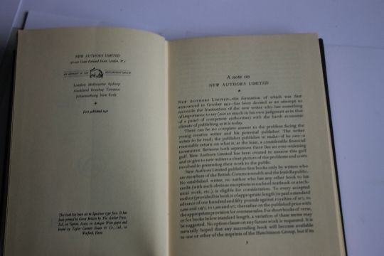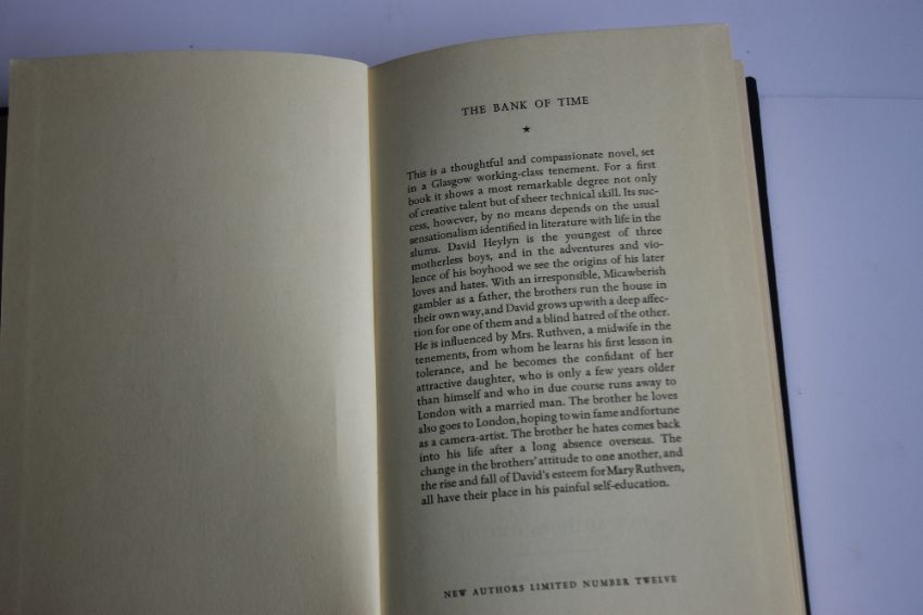 GEORGE FRIEL - 'THE BANK OF TIME', first edition published by Hutchinson of London in their 'New Authors' Series, 1959, no dustjacket. This is George Friel's first book, he went on to write 'Mr Alfred M. A. ', his fourth novel which was listed in the top 100 Scottish books of all time. Although readily available in paperback it is very rare to find a first edition of this novel.¦Condition Report:No dustjacket, scratches on back cover, otherwise very good¦