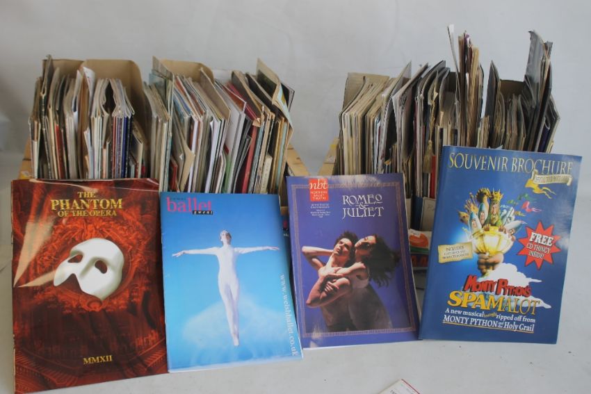 TWO WOODEN CRATES OF THEATRE PROGRAMMES DATING FROM THE LATE 1950S TO PRESENT DAY, ALTHOUGH MOST ARE RELATIVELY MODERN, including RSC, Opera, Musicals, Ballet, Choral Music, Films, TV etc.