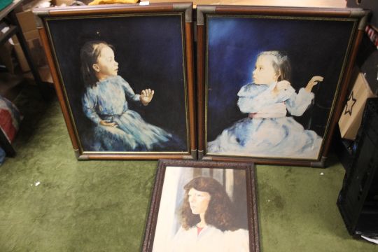 TWO FRAMED PORTRAIT OILS OF CHILDREN, together with a framed portrait of a lady