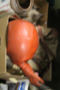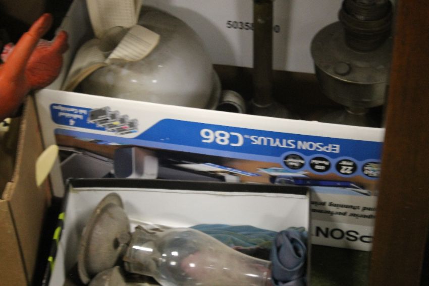 A QUANTITY OF SUNDRIES to include stoneware, parafin lamps, small vintage space hopper etc.
