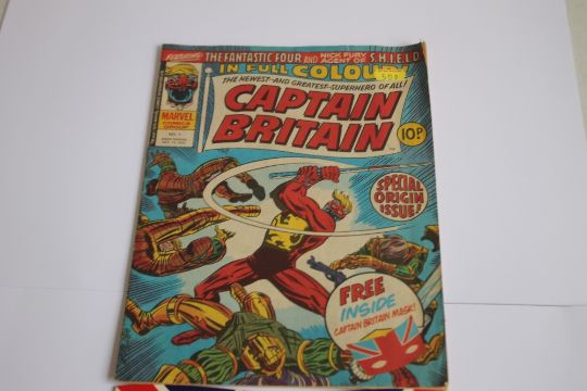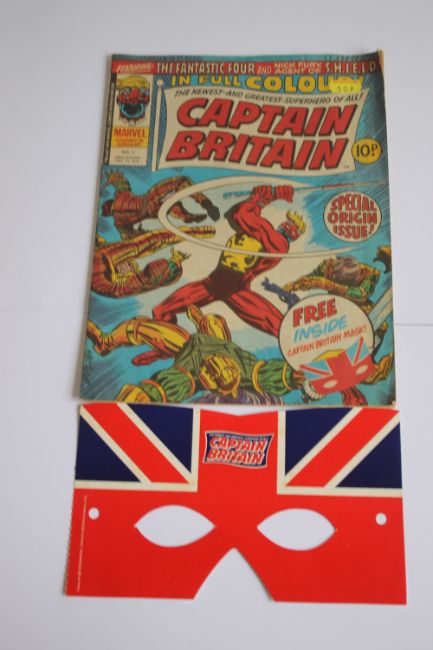 CAPTAIN BRITAIN #1 WITH FREE GIFT, week ending Oct 13, 1976 with free Captain Britain mask¦Condition Report:Price sticker on front, small tear top edge¦
