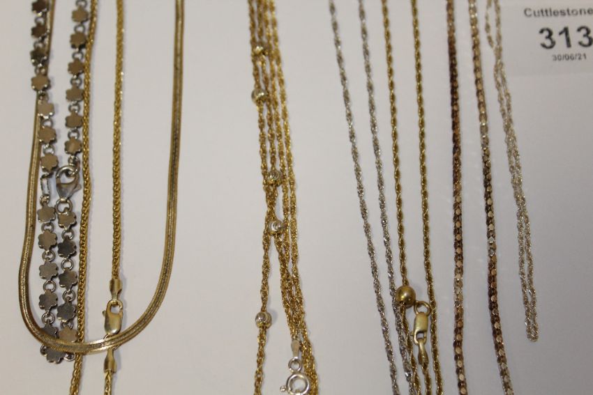 A CARD OF MAINLY SILVER NECKLACES AND CHAINS