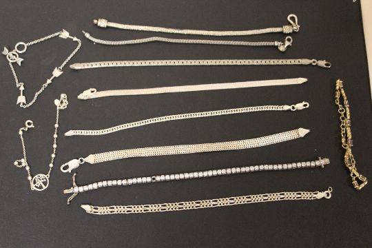 A SMALL COLLECTION OF SILVER AND COSTUME JEWELLERY