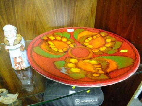 A LARGE POOLE POTTERY CHARGER AND A CERAMIC FIGURE