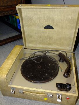 A VINTAGE COLLARO MICROGRAM RECORD PLAYER WITH BAKELITE ARM
