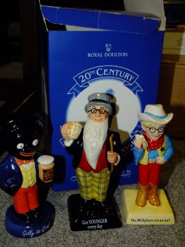 A COMPLETE SET OF ROYAL DOULTON 20TH CENTURY ADVERTISING CLASSICS AND NAME STAND, ALL BOXED AND CERTIFICATES AS NEW