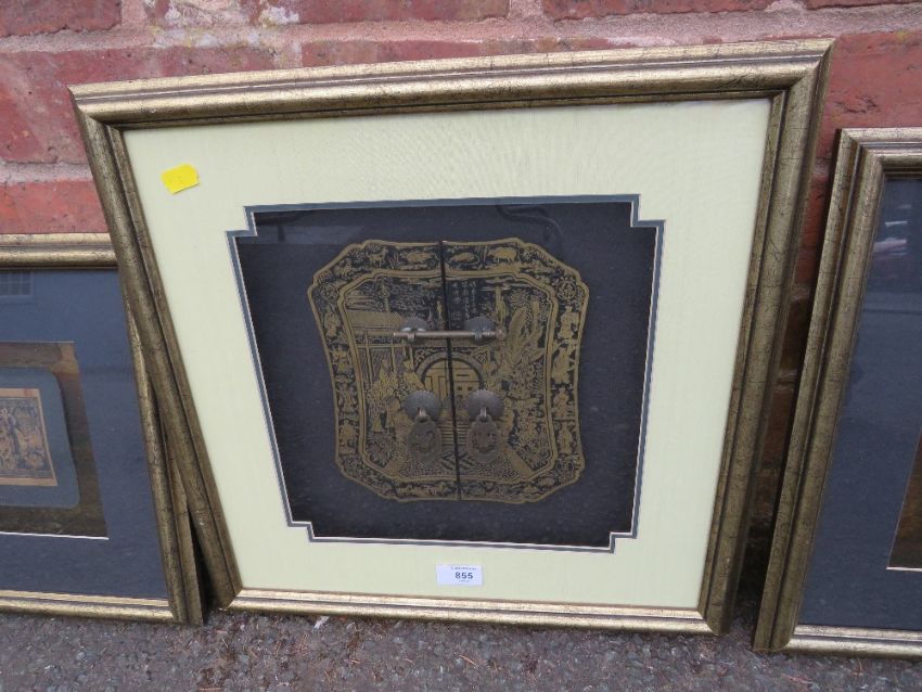 THREE MODERN GLAZED ORIENTAL STUDIES/PICTURES - ONE DEPICTING AN ELABORATE LOCK (3)