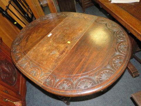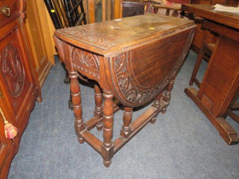 AN OAK CARVED DROPLEAF TABLE