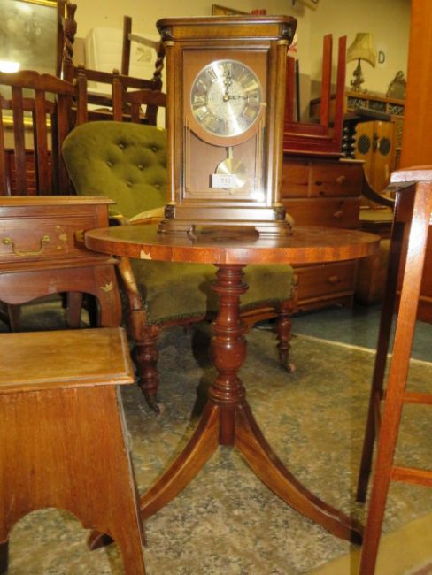 A MODERN SEIKO MANTLE CLOCK TOGETHER WITH A MAHOGANY REPRODUCTION TABLE AND TWO JARDINAIRE STANDS (4)