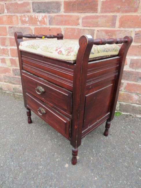 AN EDWARDIAN BOX TYPE PIANO STOOL