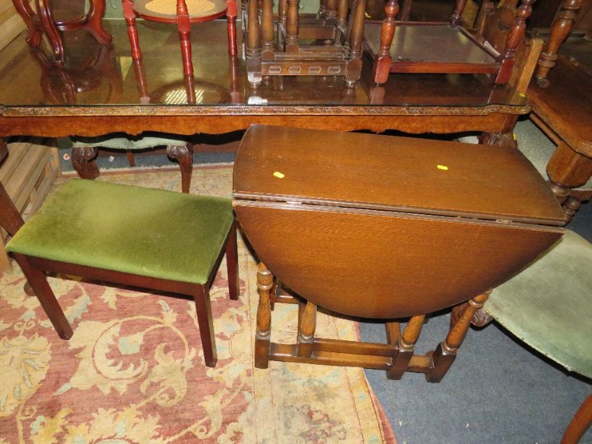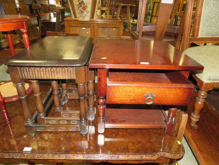 AN OAK LAMP TABLE TOGETHER WITH A NEST OF TABLES, DROPLEAF TABLE ETC (6)