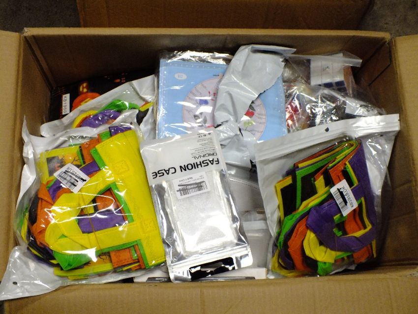 A CAGE OF MIXED WHOLESALE GOODS TO INCLUDE PHONE CASES, HALLOWEEN BAGS ETC (CAGE NOT INCLUDED)