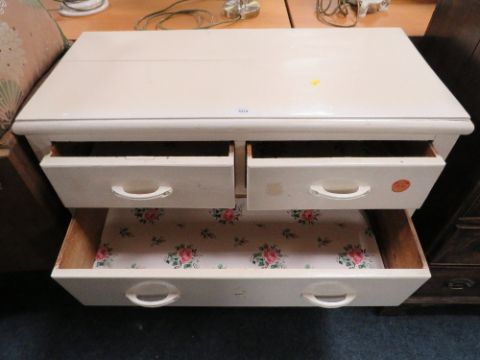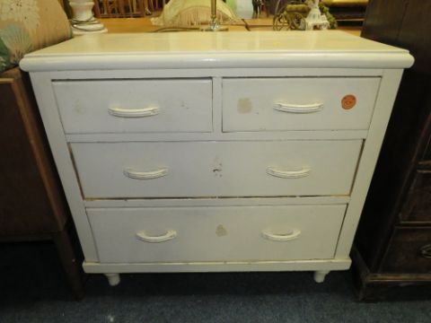 A VINTAGE PAINTED FOUR DRAWER PINE CHEST H-85 W-91 CM