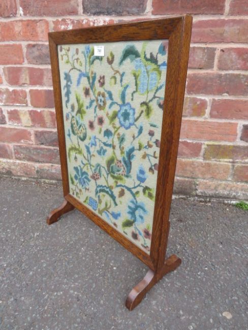 AN OAK GLAZED TAPESTRY FIRESCREEN