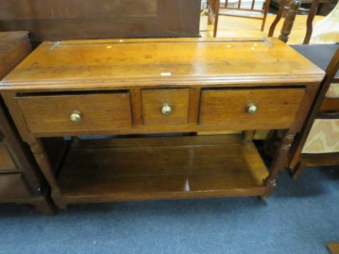 AN ANTIQUE OAK DRESSER WITH THREE DRAWERS W 137 CM
