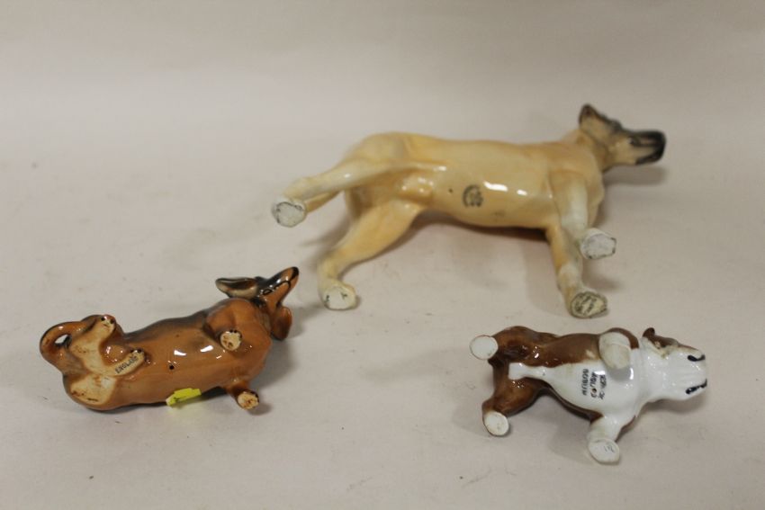 THREE BESWICK DOG FIGURES - GREAT DANE, DACHSHUND AND BULLDOG