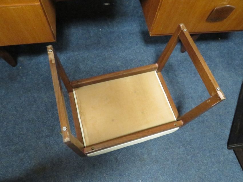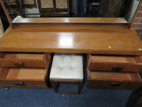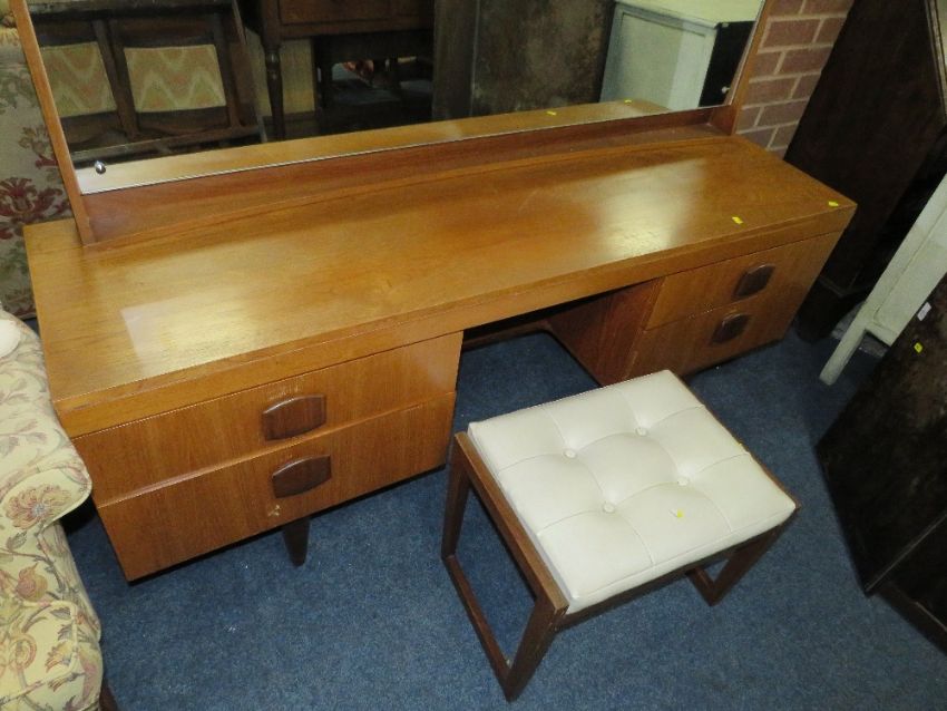 A RETRO TEAK DRESSING TABLE WITH STOOL - W 165 cm