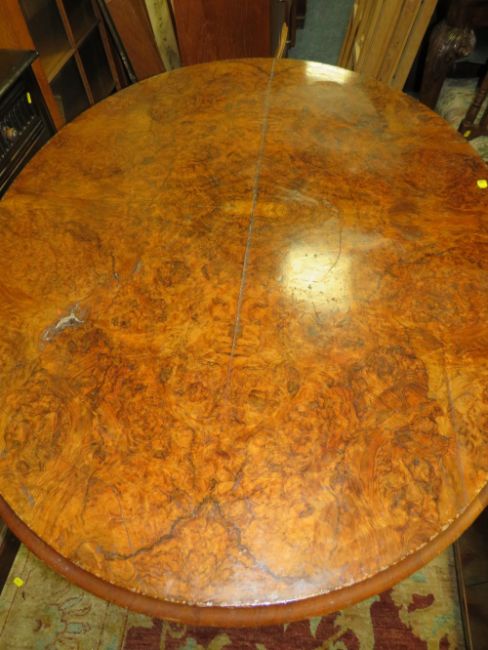 A VICTORIAN BURR WALNUT OVAL TILT TOP TABLE A/F