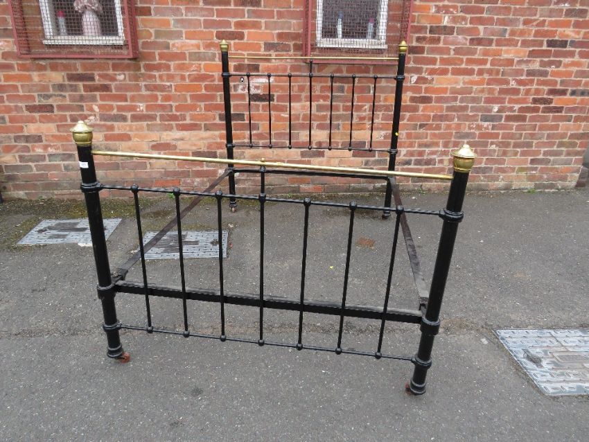 A VICTORIAN BRASS AND CAST DOUBLE BED FRAME WITH STRETCHERS - W 104 cm