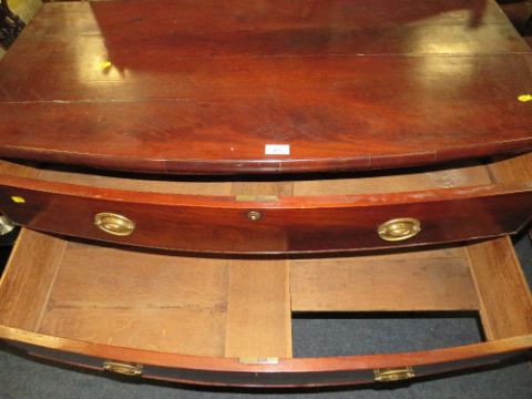 A NINETEENTH CENTURY MAHOGANY BOW FRONT 3 DRAWER CHEST, W 111 CM