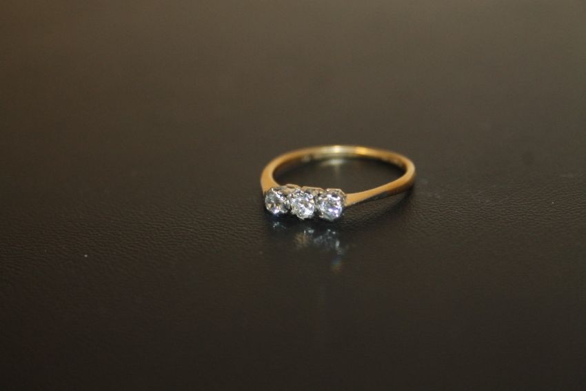 AN 18 CARAT GOLD THREE STONE DIAMOND RING, APPROX WEIGHT 1.7G