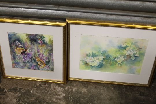 A BOX OF PICTURES AND PRINTS TO INCLUDE FLORAL WATERCOLOURS