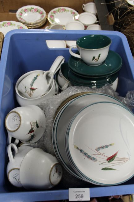 A TRAY OF DENBY GREENWHEAT PATTERN CERAMICS