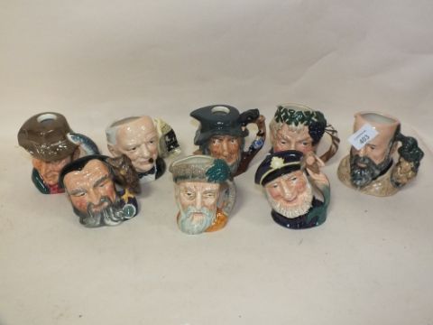 A COLLECTION OF EIGHT ROYAL DOULTON CHARACTER JUGS, TO INCLUDE OLD SALT, ROBINSON CRUSOE, GEORGE TINWORTH AND WINSTON CHURCHILL