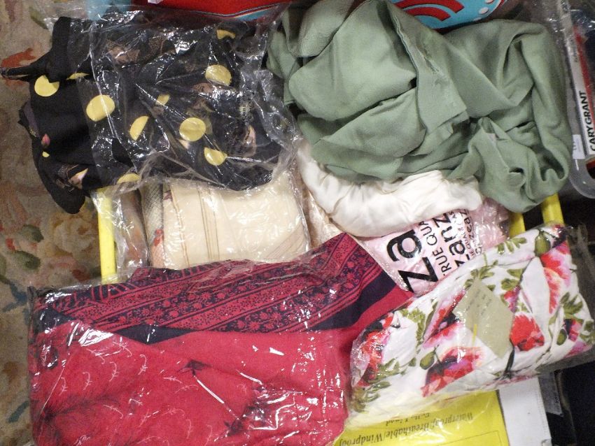 TWO BOXES AND A BAG OF ASSORTED CLOTHING