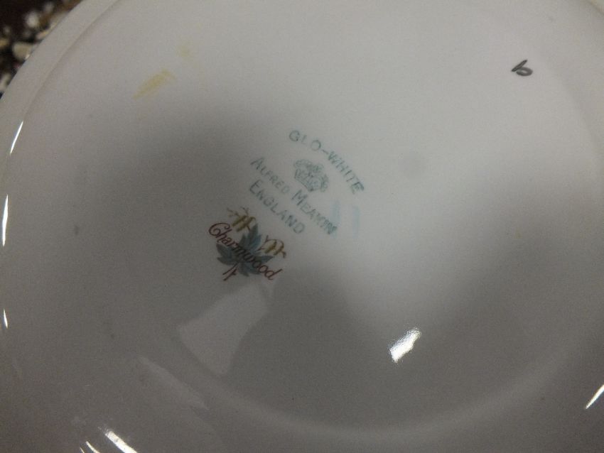 TWO TRAYS OF ASSORTED CHINA AND CERAMICS TO INCLUDE ROSE PATTERN CHINA, ALFRED MEAKIN GLOW WHITE DINNERWARE ETC