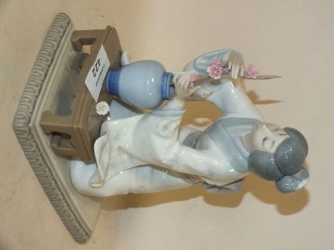 A LLADRO FIGURE OF A GEISHA ARRANGING FLOWERS, H 19 CM