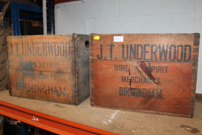 TWO VINTAGE J T UNDERWOOD WINE AND SPIRIT MERCHANT CRATES