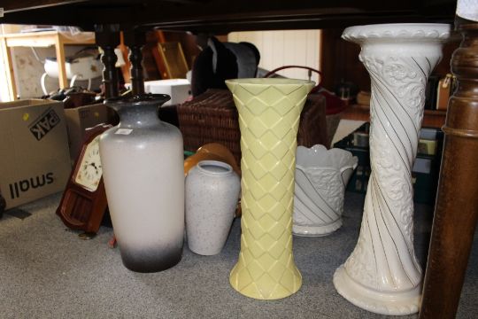 A SMALL QUANTITY OF LARGE CERAMICS TO INCLUDE A JARDINIERE ON STAND, TWO WEST GERMAN VASES ETC.