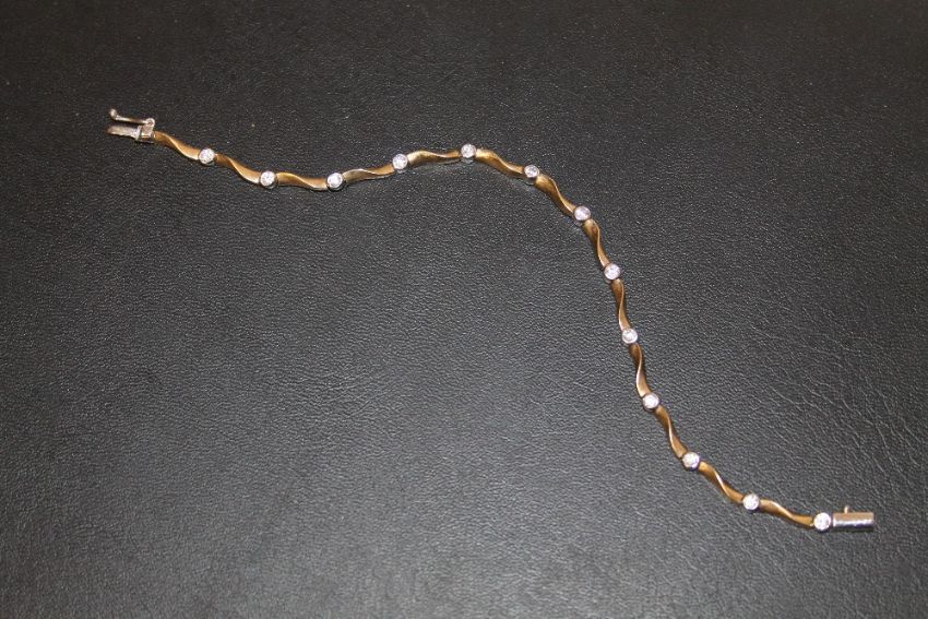 A HALLMARKED 9 CARAT GOLD BRACELET, SET WITH CLEAR STONES, APPROX WEIGHT 6.6G